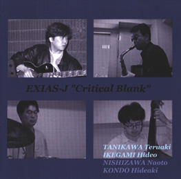 EXIAS-J / Critical Blank Bishop Records EXJP002, 2000 近藤秀秋(Gtr)、西沢直人(Dr,Perc)、谷川輝明(Sax)、池上秀夫(WB) 近藤秀秋 (g)、池上秀夫 (b)、谷川輝明 (spn, as)、西沢直人 (dr) が参加したEXIAS-J の『クリティカル・ブランク』(1999年10月17日録音) は、ヘッドアレンジやソロオーダーと行ったジャズの手法を踏襲しているわけではないが、ブルージーな雰囲気がアルバム全体を覆っていて、現在の地点からみると、開かれた現代ジャズの試みとも呼び得るEXIAS-J の異色作となっている。メンバー全員で演奏する曲の中にも様々な組合わせの即興が登場するが、特に「直面」と「繊細な自己同一性」は、フリーインプロヴィゼーションの起源に横たわる特権的関係性であるデュオの演奏で、会話するようにドラミングをする西沢を相手にフリーフォームで挑む谷川と池上が、演奏に「危機的=批判的空白」を忍び込ませている。これ以降のEXIAS-J は、常にデュオに回帰しながら歩むこととなる。推薦盤。 (北里義之、「音場舎通信」第60号) |