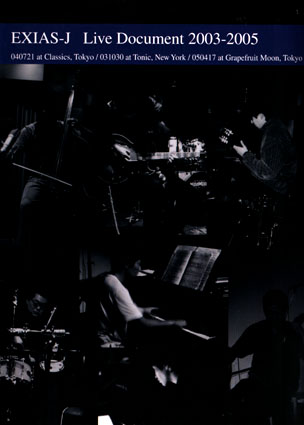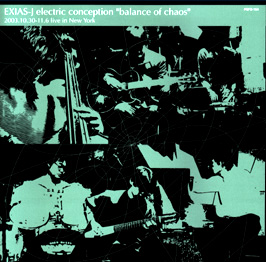 /balance of chaos P.S.F.Records, PSFD-154, 2004 近藤秀秋(gtr), 谷川卓生(gtr), 神田晋一郎(analog-synth, pf), 宮崎哲也(live-electronics, pc), 河崎純(cb), 西沢直人(dr) 『Exias-J electric conception / balance of chaos』は、昨年のニューヨーク公演を6曲収めた約70分のCD。曲によって多少参加メンバーは異なるが、基本は近藤秀秋をはじめとする6人編成で、2本のギター、ピアノ、アナログシンセサイザー、エレクトロニクス、コンピューター、コントラバス、ドラムスなどにより、曲をインプロヴァイズしていく。タイトル通りに静謐とダイナミズムをストイックに操り、絵を描くような音の交感の面白さがよくわかる演奏だ。時空を横切り斬り裂くが如き美しく硬質な音が作り出す、透徹した磁場の緊張感に耐え切れなかったのか、どこからか喚声も飛ぶ生々しい仕上がりも良し。ジャンルのイディオムから解き放たれるためにアグレッシヴな意識をもって演奏したかのようで、そこにぼくは勝手にロックを感じるから、すごく好きだ。 (行川和彦、「ミュージックマガジン」04.8月号) |